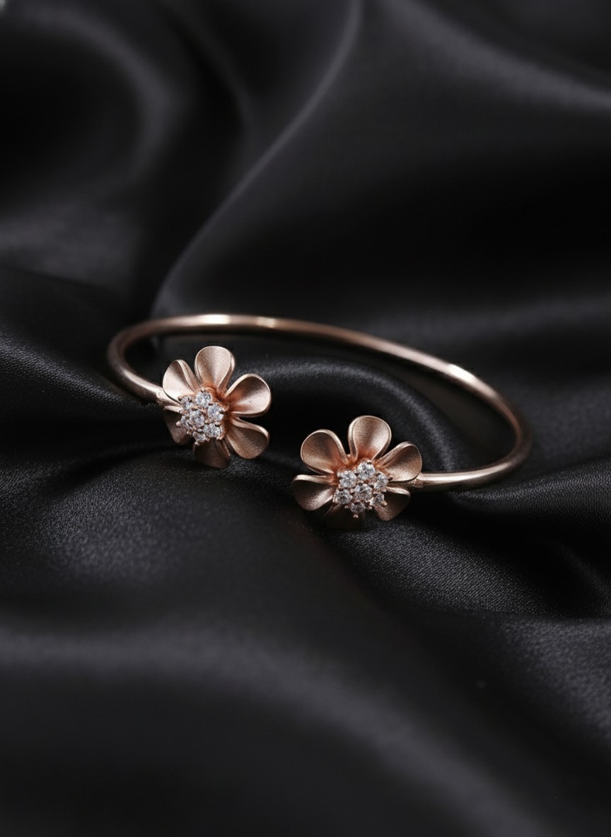 Flower leaf Rose Gold Silver Bengles For Women